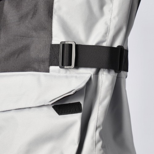 Made of 450D polyester with large, reinforced mesh panels, it gives you the coolness you need on the hottest days, without sacrificing durability and safety. Every detail has been designed to tackle long touring adventures while ensuring maximum comfort: from the microfleece collar to the multiple adjustments on the arms, wrists, and hips.