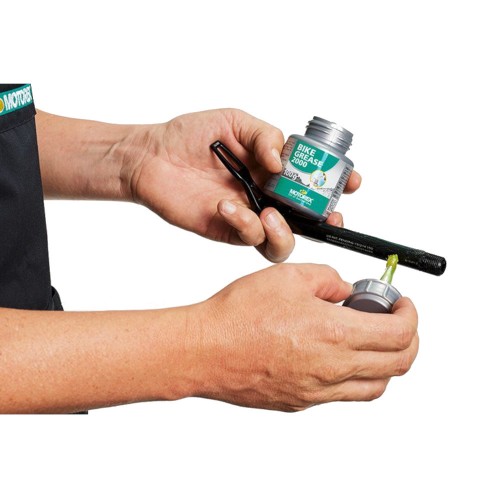 Calcium-based yellow fluorescent grease with remarkable and long-lasting lubricating performance. MOTOREX BIKE GREASE is a highly water-repellent and extremely pressure-resistant grease. It offers increased oxidation resistance and very good ageing resistance. Ideal for lubricating bearings, wheel bearings, joints and headset. Neutral to elastomers and seals and prevents galvanic corrosion.